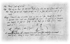 Büchner was a house afire during these last months of his life, and the handwriting in the Woyzeck manuscript shows a precise, meticulous hand working at breakneck speed. The famous z-y confusion reflected in Alban Berg’s variant “Wozzeck” is easy to understand once one sees the virtually identical y and z in the speeding hand. Only after independent research unearthed the historical sources could the Woyzeck spelling be ascertained. A mere matter of months after assuming his new duties in Zurich, Büchner caught the fever that killed him, and it cut off his plans to rejoin his beloved in Strasbourg at the Easter term break. Few if any of his relatives, who mournfully collected his literary remains, had any notion what the loose pages with “Woyzeck” scribbled on them represented for the European theatre. They would have been startled if told that their Georg would be considered one of the great dramatists of the European tradition, for he had never had a play produced. They thought of him as a successful medical student and scientist, a young man on the verge of a solid scientific career. His literary scribblings were not, for them, the precious evidence of the vocation of a genius, and one completed play among his papers was actually discarded.