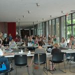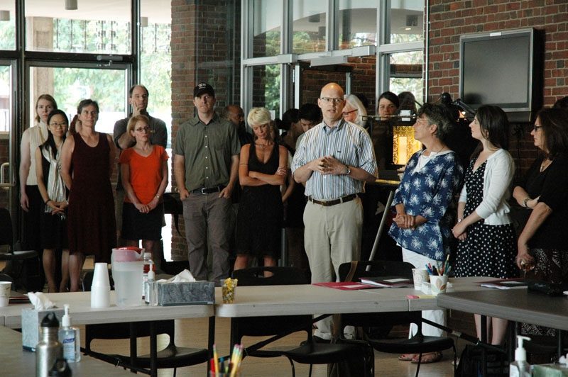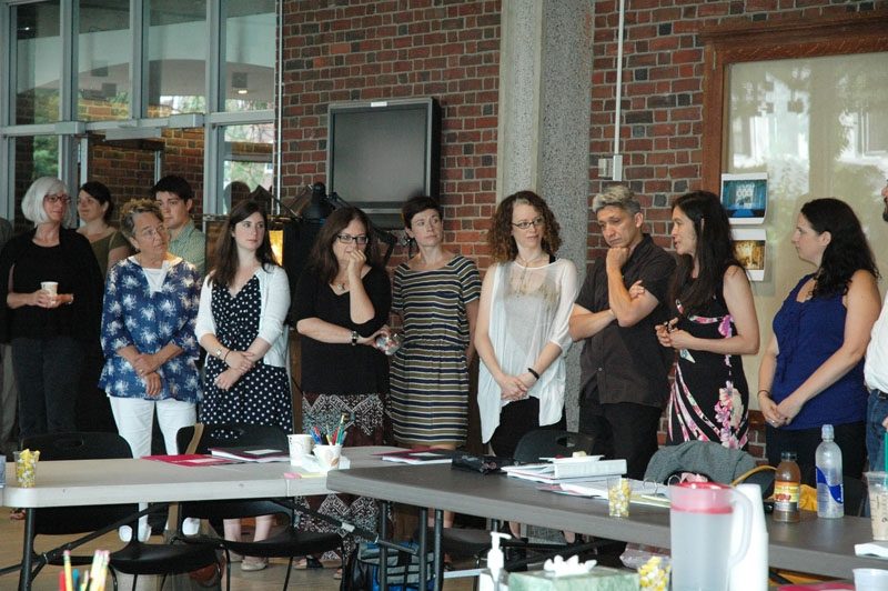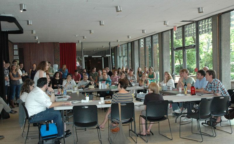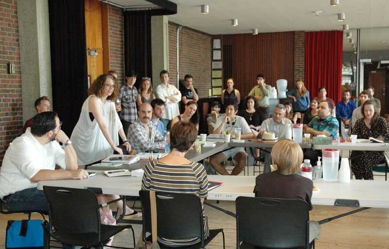 Over 100 people were present in the A.R.T.’s West Lobby for the “Meet and Greet” of our first production of the season, the world premiere of David Adjmi’s play, Marie Antoinette. A.R.T. Artistic Director Diane Paulus welcomed everyone, followed by Yale Repertory Theatre Artistic Director James Bundy, who brought his staff along for the event. Director Rebecca Taichman and Set Designer Riccardo Hernandez presented the set model, Costume Designer Gabriel Berry told us about the fabulous costumes and enormous wigs that will be created in the shops during the coming weeks; followed by the reading of the play by the cast. We are all very much looking forward to watching this production take shape, and can’t wait for the premiere on September 7.