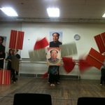 Wares led a group of theater students in an exploratory workshop on staging some of the rally scenes from the novel– check out the photos below.