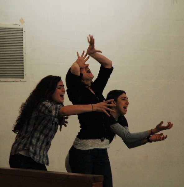 I had the pleasure of sitting in rehearsal today, and took some photos as one of the major scenes – of Prometheus’ arrest and torture – were being staged. The song of the daughters of the ocean is beyond gorgeous, and heartbreaking…. here are some images: