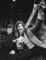 Christopher Durang and Charles Levin in the 1974 Yale Repertory Theatre production of The Idiots Karamazov.Similarly, Innaurato understands their conspiracy as a compliment. Innaurato, who speaks fluent Russian, even attributes an element of parody to Dostoevsky’s original. “I think that Dostoevsky, like any great artist, was an anarchist. There’s an element of parody in the novel itself. Specially in the Grand Inquisitor scene. Constance Garnett, the translator, missed the density of Dostoevsky’s grotesque humor. Pushkin was not altogether straightforward either. I can’t look at Eugene Onegin except as parody.”