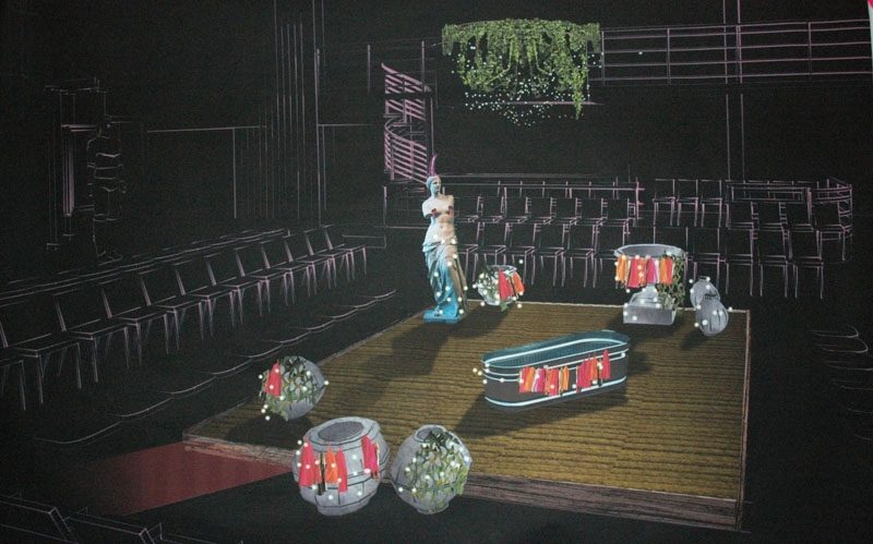 Welcome to the The Lily’s Revenge blog! Over the next month, we– the dramaturgs on the production, Morgan and Fiona– hope to give you an inside look at the process of producing this five-act, multimedia Flowergory. Last week, we finished staging Act One (also known as “The Deity” and “A Princess Musical”). Act One introduces us to the world of the Great Longing – an antagonist of the Lily and the characterization of nostalgia, which is a major recurring theme in the show. Act One plays with conventional notions of musical theater (a particularly nostalgic genre for American theater-goers), and it’s interesting how the mix of “traditional theater” in the A.R.T.’s non-traditional performance space, OBERON, works together. It’s particularly exciting to see how director Shira Milikowsky and designer Sara Brown have conceptualized a transformation of OBERON throughout the performance– no spoilers here, folks. Needless to say, there are plenty of surprises in store.