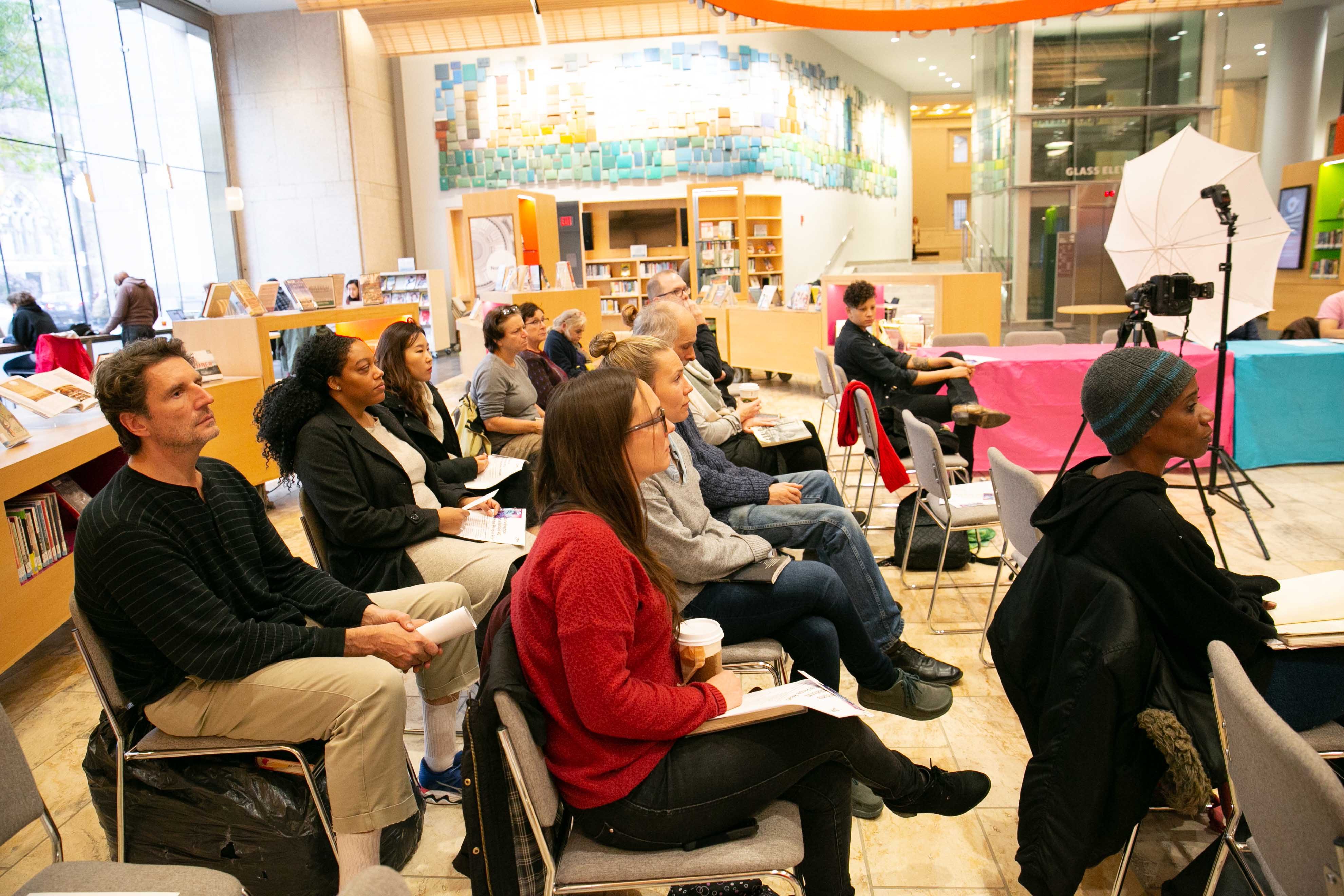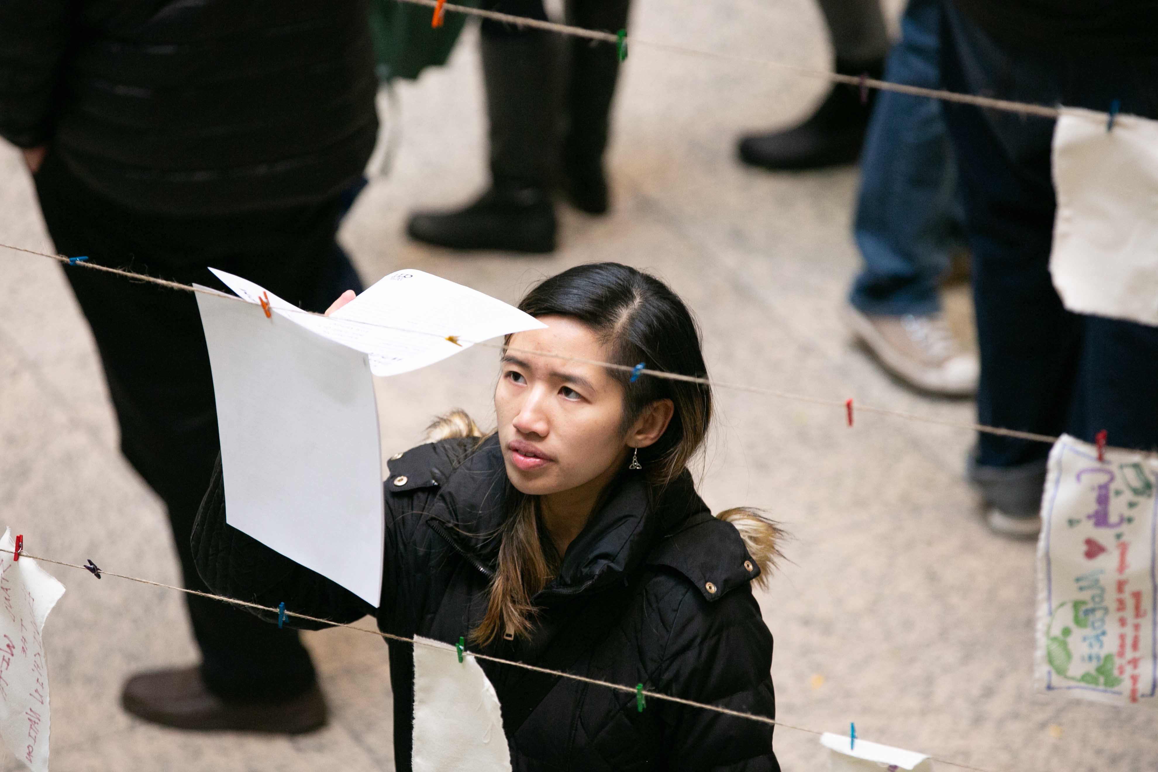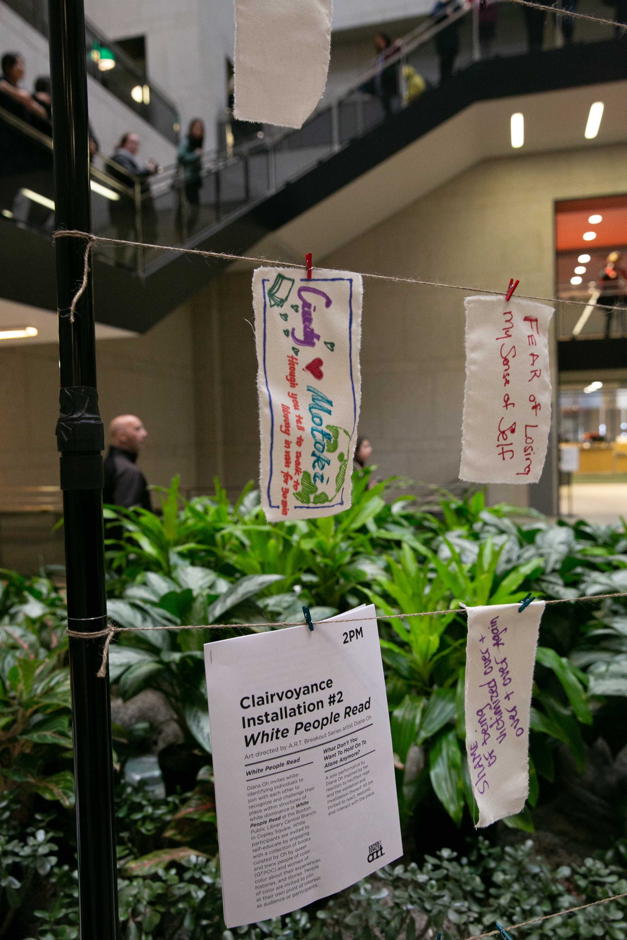 Diana Oh invites white-identifying individuals to join with each other to recognize and challenge their place within structures of white dominance in White People Read at the Boston Public Library Central Branch in Copley Square. White participants are invited to self-educate by engaging with a collection of books curated by Oh by queer and trans people of color (QTPOC) and women of color about their experiences, histories, and stories. People of color are invited to join at their own point of interest: as audience or participants.